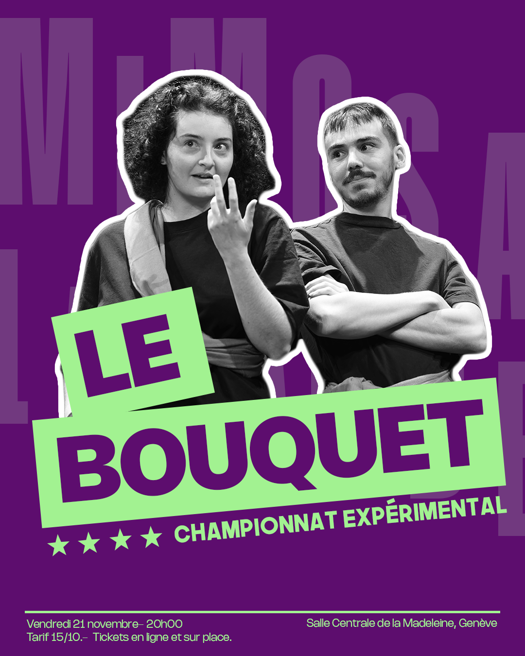 Match d’improvisation du Bouquet Salle Centrale de la Madeleine, Genève Achat en ligne ou sur place Match de la Ligue Élite Le Bouquet est un championnat d’improvisation théâtrale. L’élite des joueurs et joueuses de la Fédération d’Improvisation Genevoise se retrouvent afin d’offrir au public ce qui se fait de mieux en match d’impro. Les 4 […]